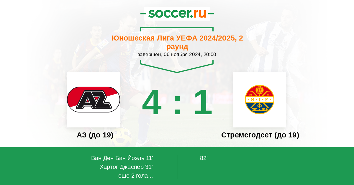 Протокол матча АЗ (до 19) против Стремсгодсет (до 19)
