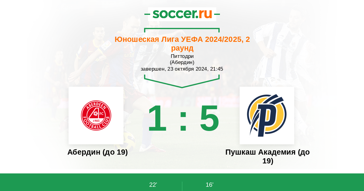 Протокол матча Абердин (до 19) против Пушкаш Академия (до 19)