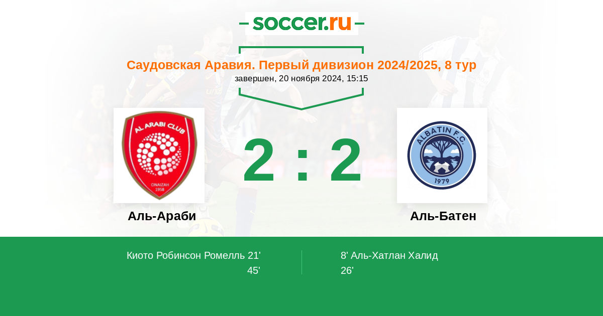 Хозяйская команда выглядит несколько сильнее своих сегодняшних соперников, должна без особых проблем одержать победу на своём поле над Аль-Батеном и с большой вероятностью забьёт в ворота гостей хотя бы один гол до перерыва