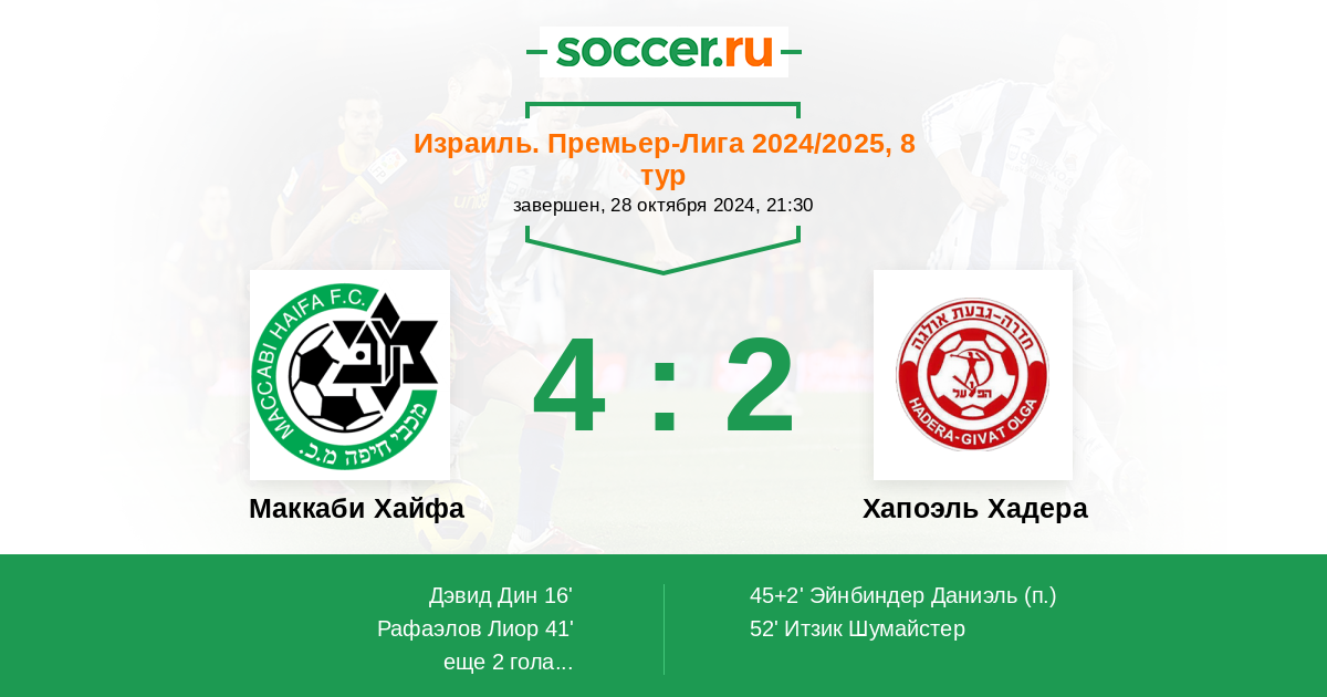 Протокол матча Маккаби Хайфа против Хапоэль Хадера