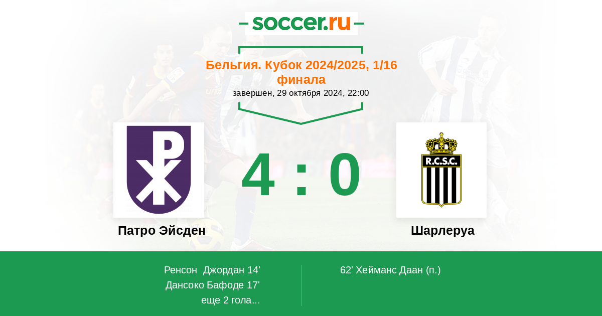 Протокол матча Патро Эйсден против Шарлеруа