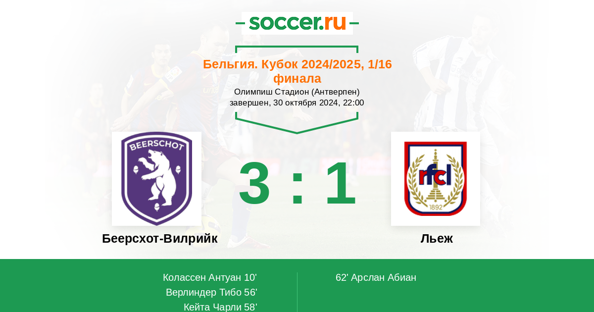 Протокол матча Беерсхот-Вилрийк против Льеж