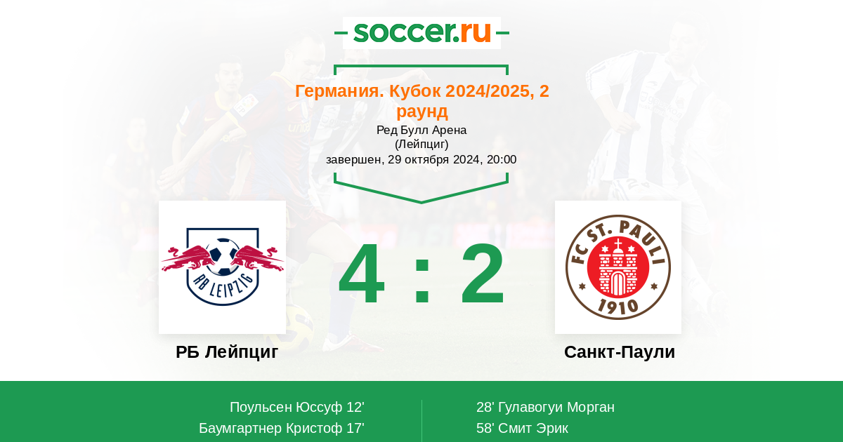 Протокол матча РБ Лейпциг против Санкт-Паули