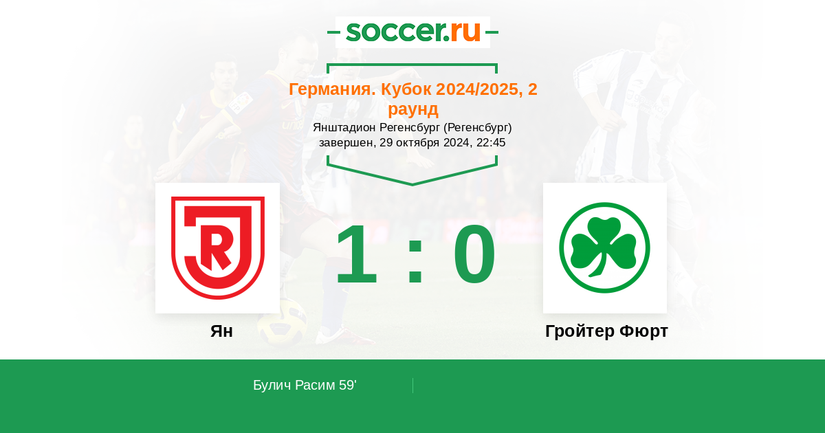 Протокол матча Ян против Гройтер Фюрт