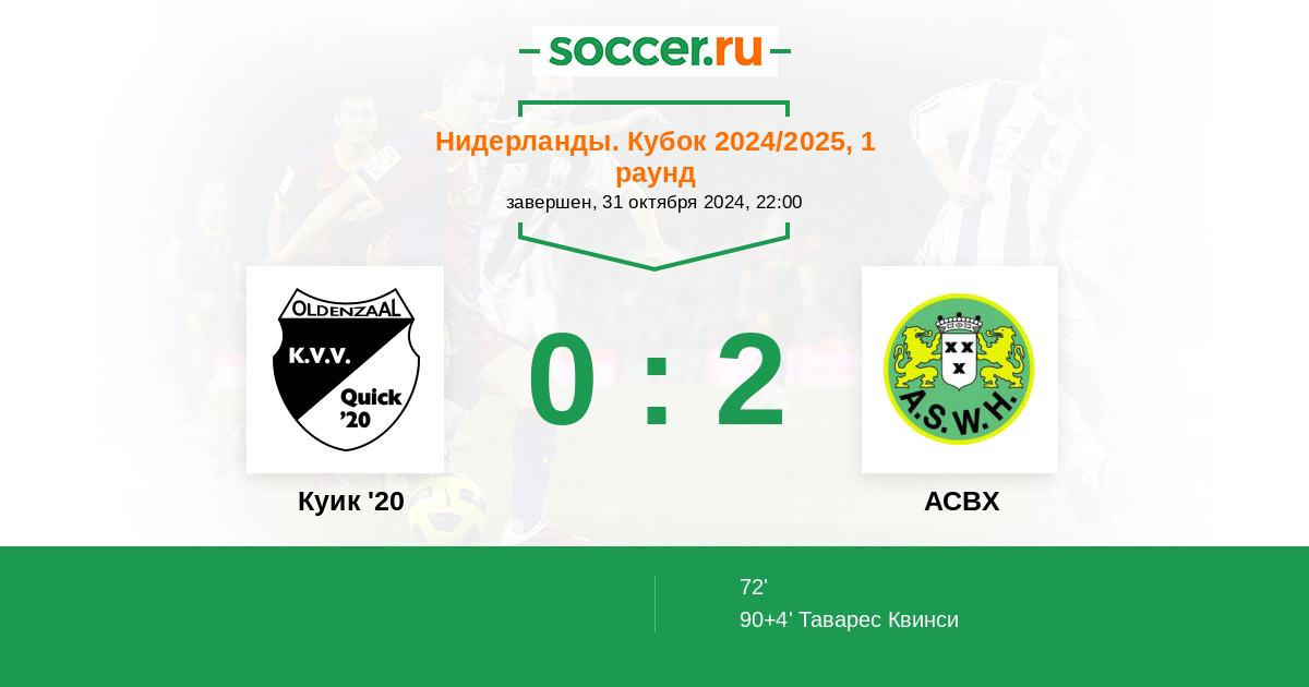 Протокол матча Куик '20 против АСВХ