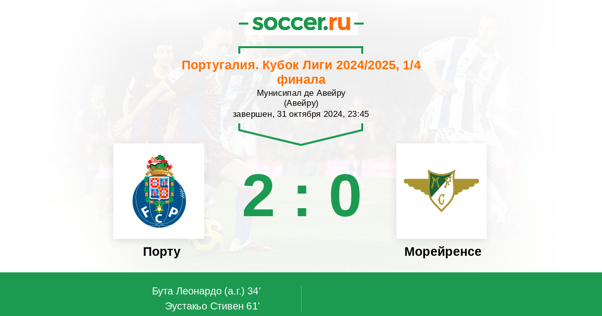 Протокол матча Порту против Морейренcе