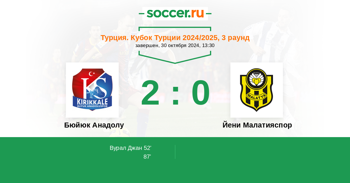 Протокол матча Бюйюк Анадолу против Йени Малатияспор