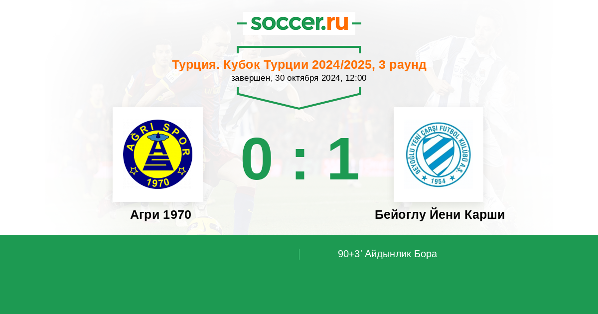 Протокол матча Агри 1970 против Бейоглу Йени Карши