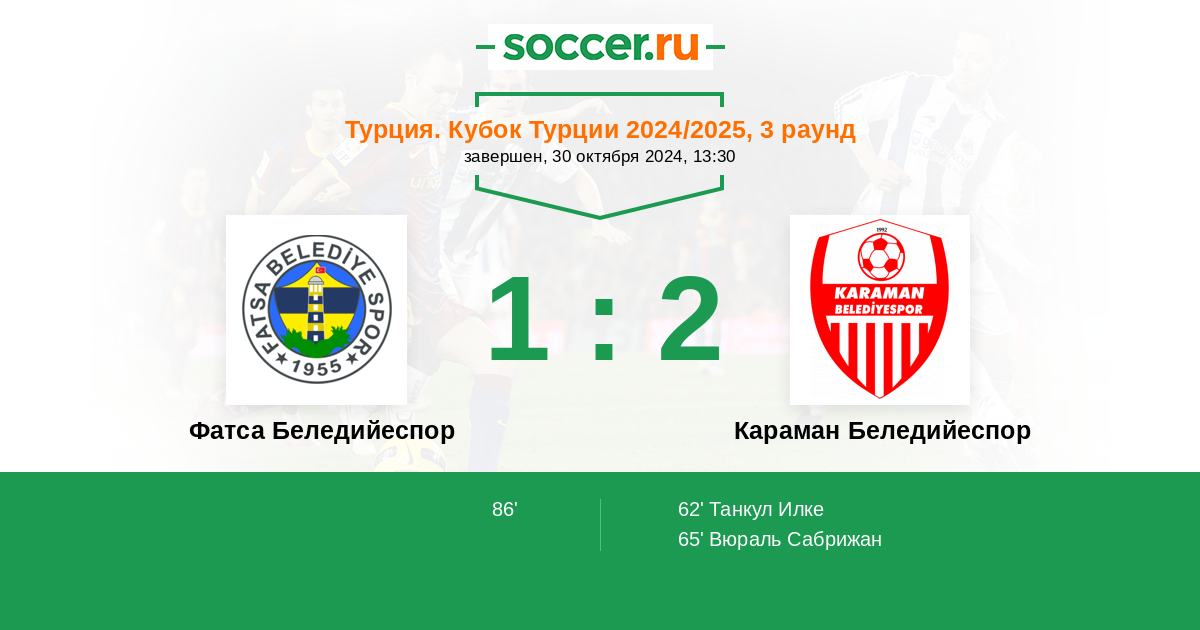 Протокол матча Фатса Беледийеспор против Караман Беледийеспор