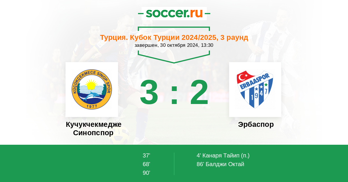Протокол матча Кучукчекмедже Синопспор против Эрбаспор