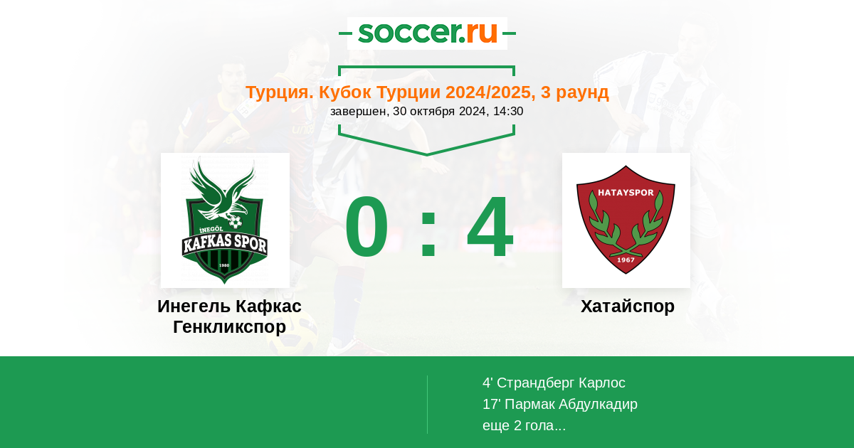 Протокол матча Инегель Кафкас Генкликспор против Хатайспор
