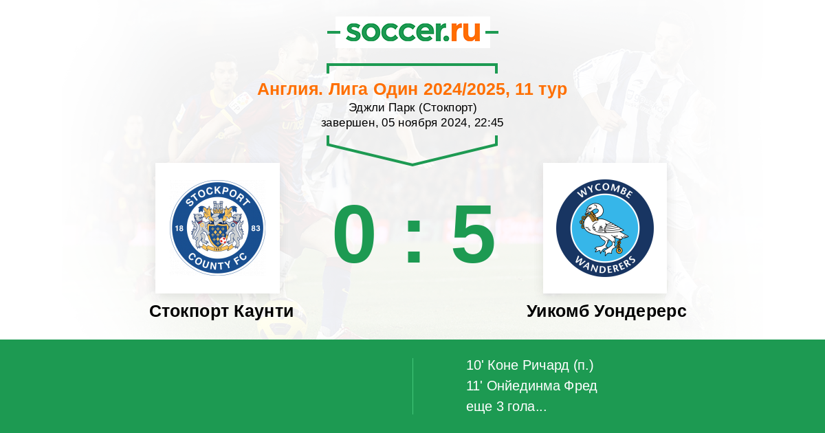 Протокол матча Стокпорт Каунти против Уикомб Уондерерс