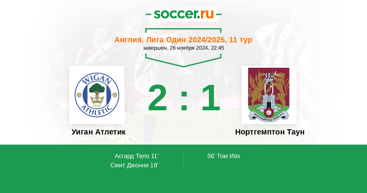 Протокол матча Уиган Атлетик против Нортгемптон Таун