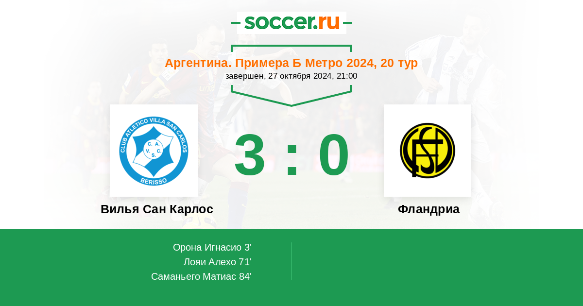 Протокол матча Вилья Сан Карлос против Фландриа