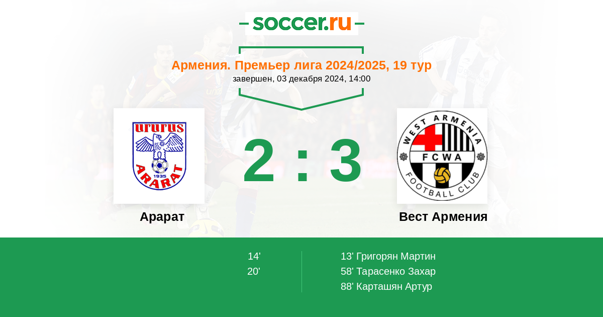 Протокол матча Арарат против Вест Армения