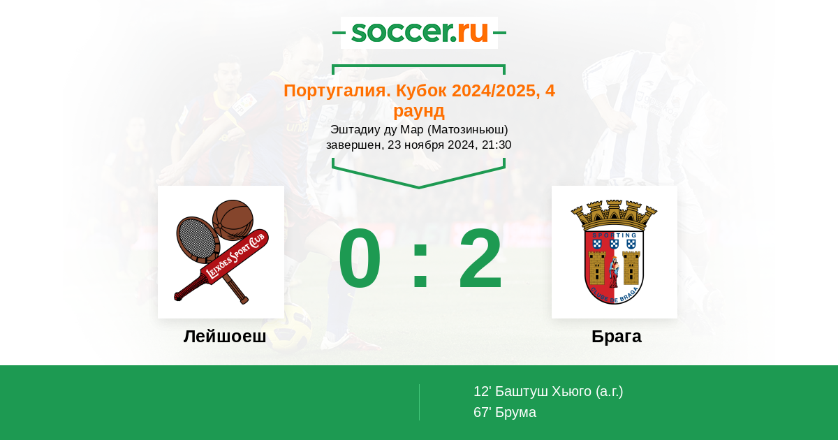 Протокол матча Лейшоеш против Брага