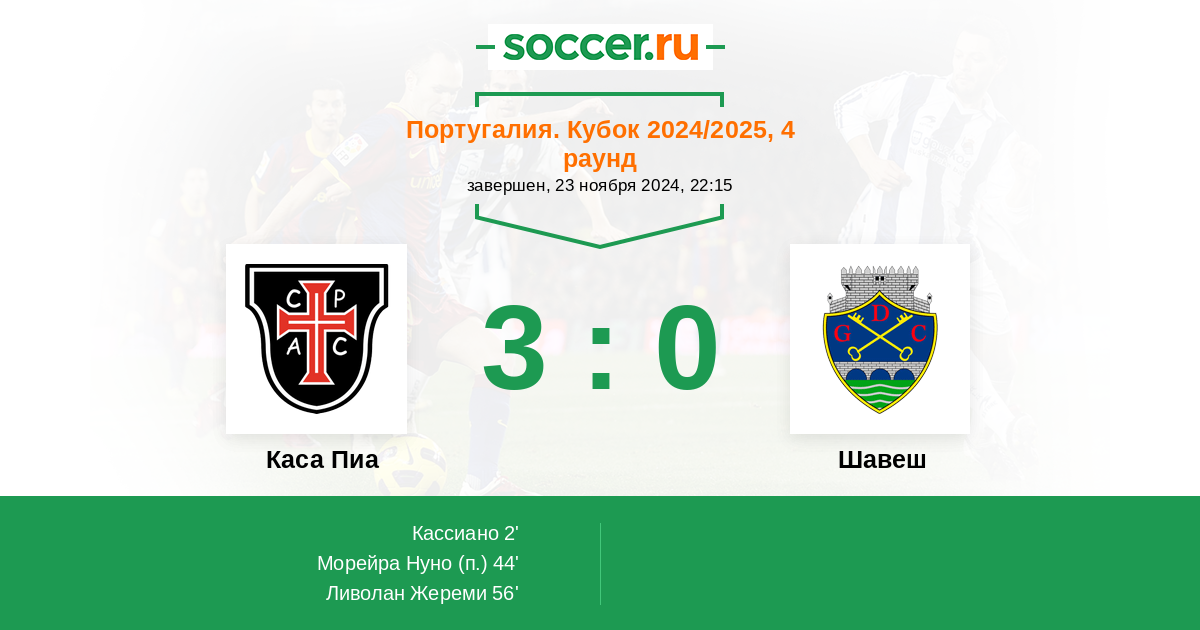 Протокол матча Каса Пиа против Шавеш