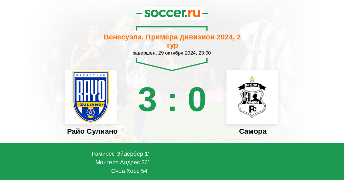 26' (2:0) Монтеро Андрес (11) (Рамирес Эйдербер (70))