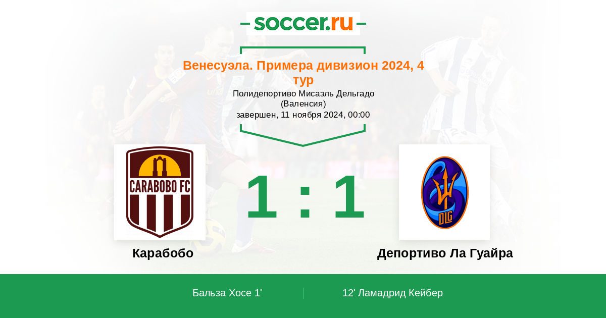 Протокол матча Карабобо против Депортиво Ла Гуайра