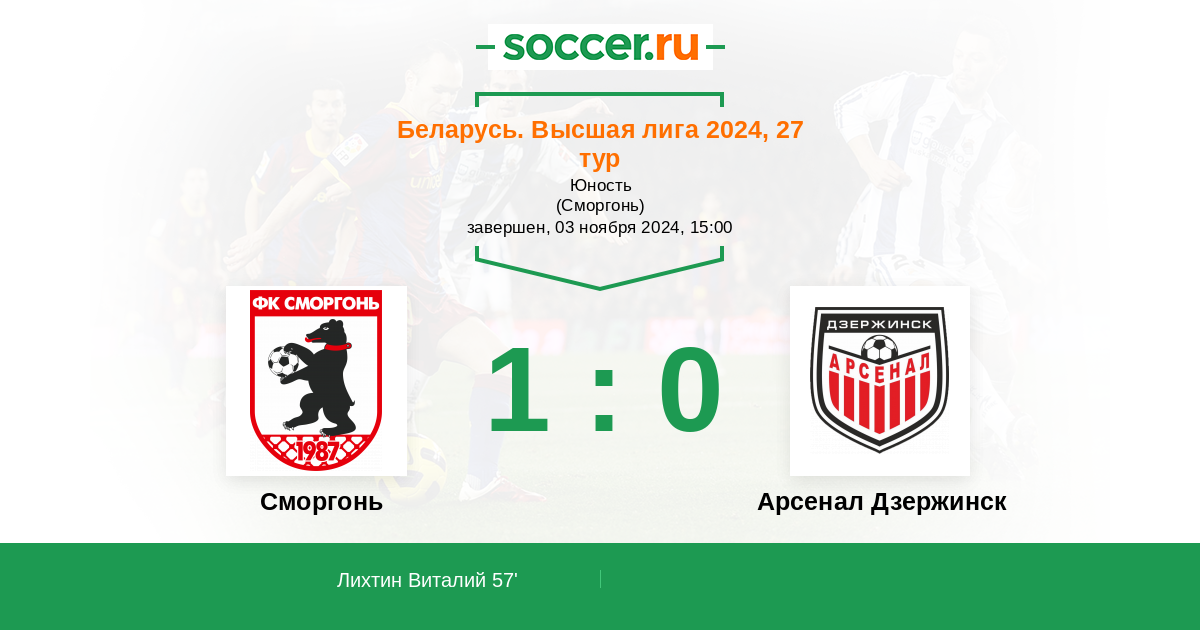 Протокол матча Сморгонь против Арсенал Дзержинск