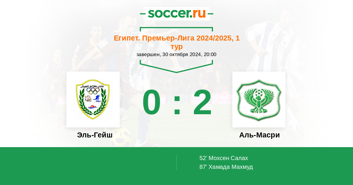 52' (0:1) Мохсен Салах (9) (Махлуф Мохамед (6))