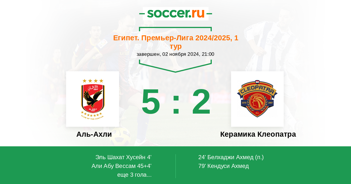 Протокол матча Аль-Ахли против Керамика Клеопатра