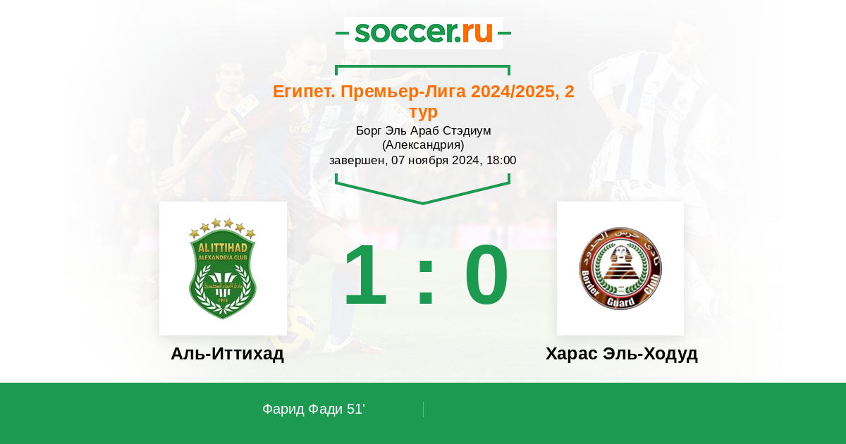 51' (1:0) Фарид Фади (9) (K. El Deeb)