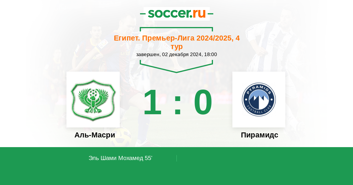 55' (1:0) Эль Шами Мохамед (11) (Махлуф Мохамед (6))