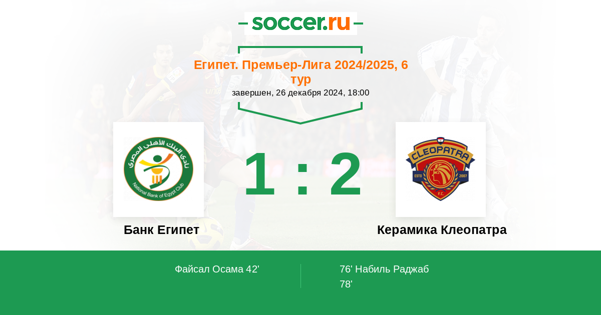 Протокол матча Банк Египет против Керамика Клеопатра