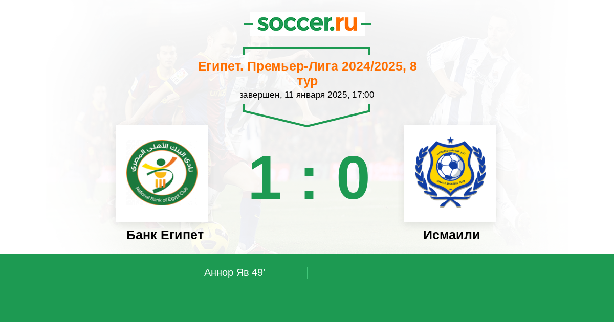 Протокол матча Банк Египет против Исмаили