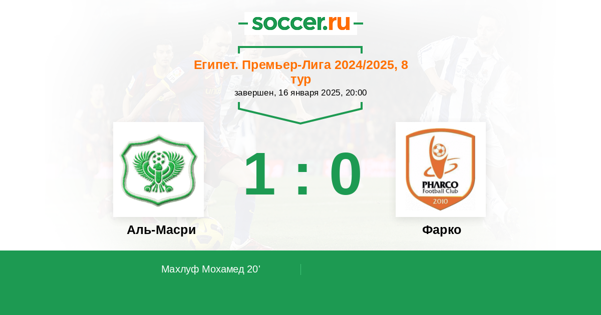 20' (1:0) Махлуф Мохамед (6) (Али Хассан (8))