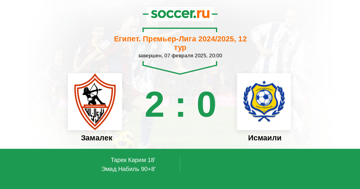 Протокол матча Замалек против Исмаили