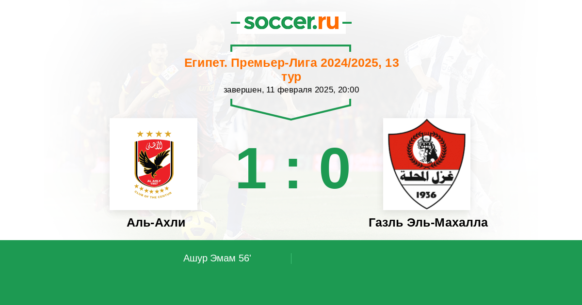 Протокол матча Аль-Ахли против Газль Эль-Махалла