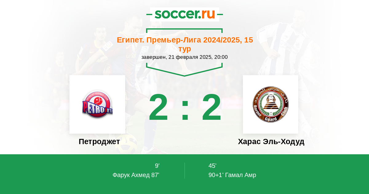 Протокол матча Петроджет против Харас Эль-Ходуд