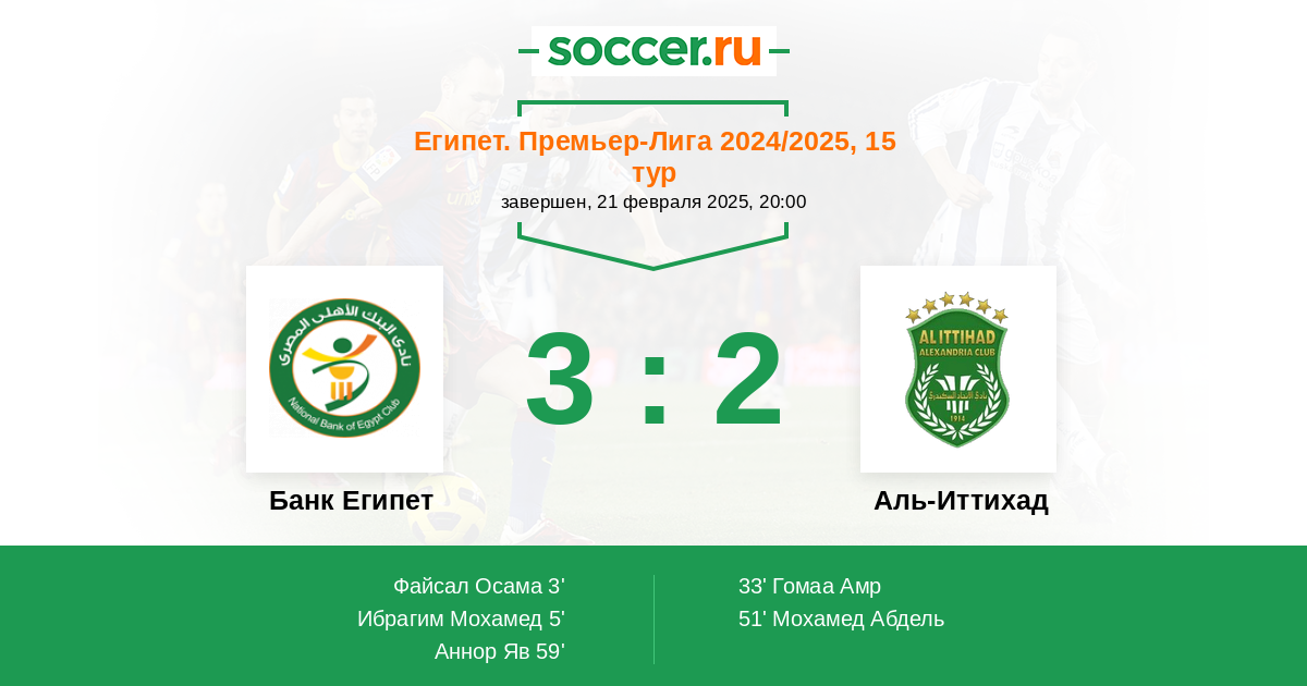 Протокол матча Банк Египет против Аль-Иттихад