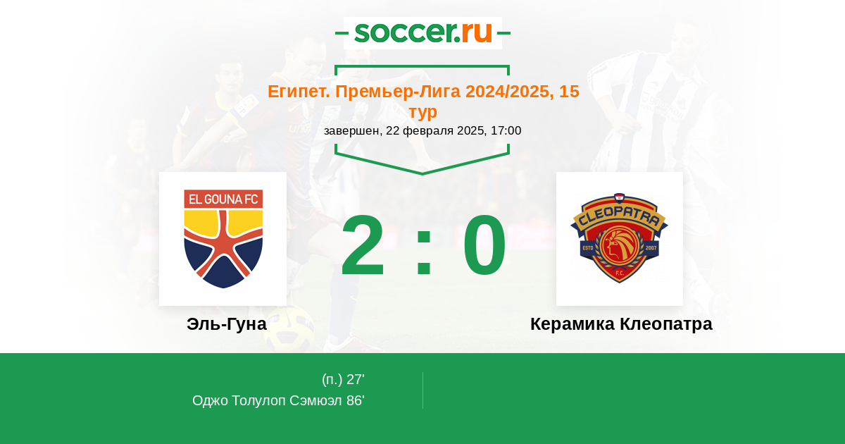 Протокол матча Эль-Гуна против Керамика Клеопатра