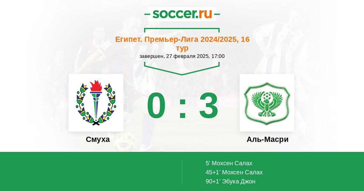 5' (0:1) Мохсен Салах (9) (Эль Саадви Амр (13))