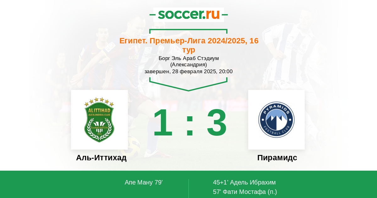 45+1' (0:1) Адель Ибрахим (30) (Фати Мостафа (11))
