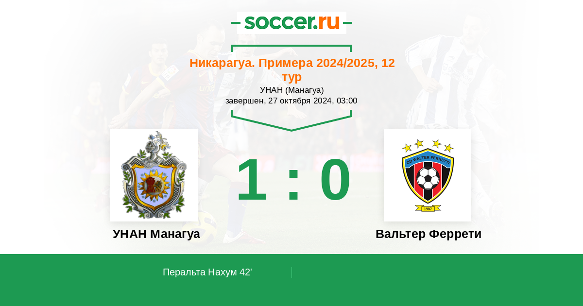 Протокол матча УНАН Манагуа против Вальтер Феррети