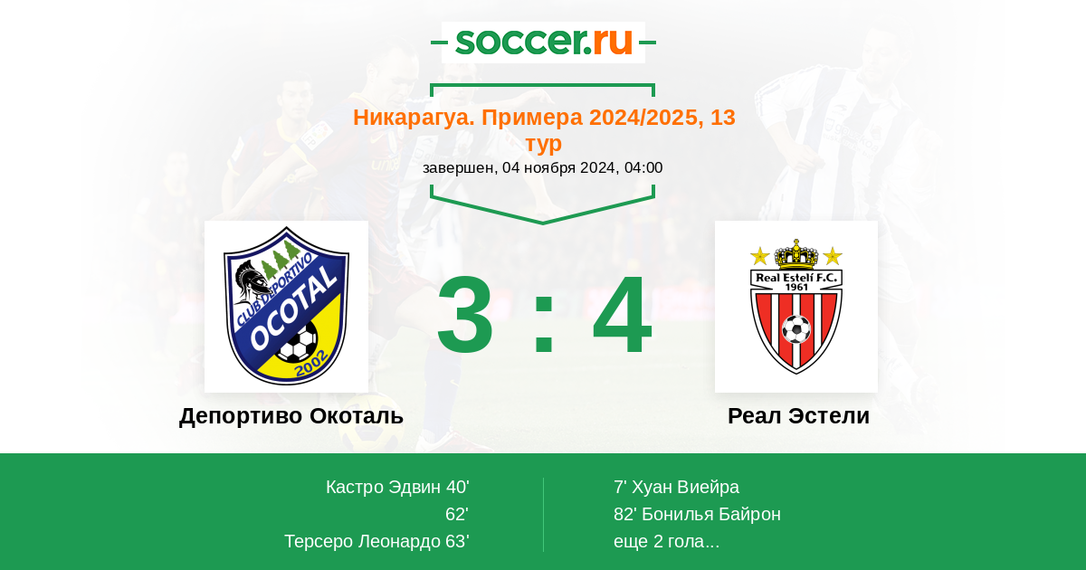 Протокол матча Депортиво Окоталь против Реал Эстели