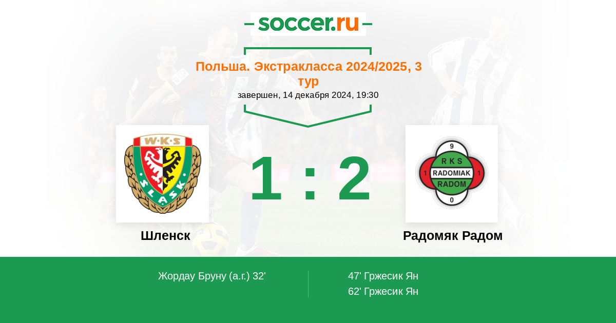 Протокол матча Шленск против Радомяк Радом