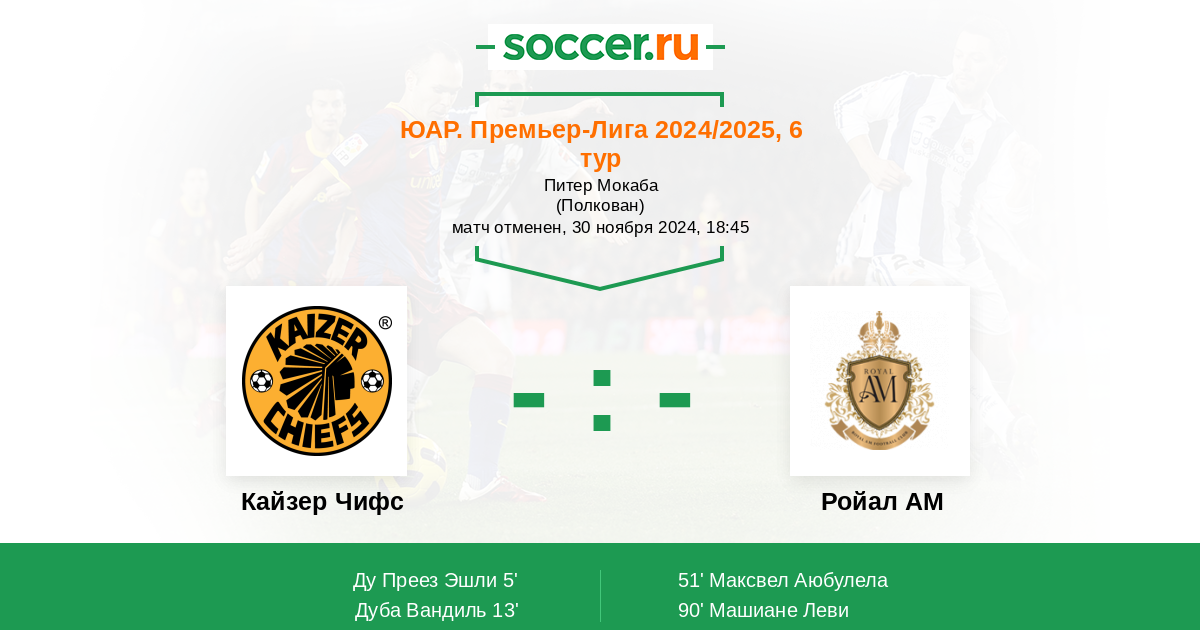 Расстановка матча Кайзер Чифс против Ройал АМ