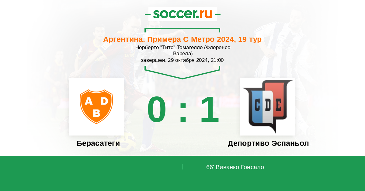 Протокол матча Берасатеги против Депортиво Эспаньол