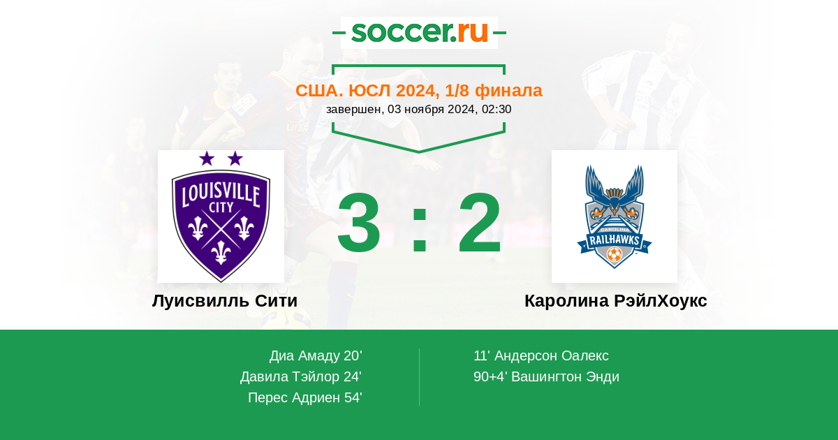 Протокол матча Луисвилль Сити против Каролина РэйлХоукс