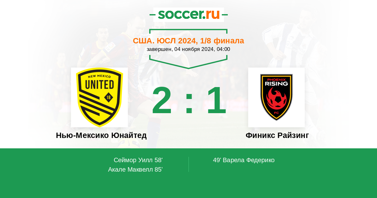 Протокол матча Нью-Мексико Юнайтед против Финикс Райзинг