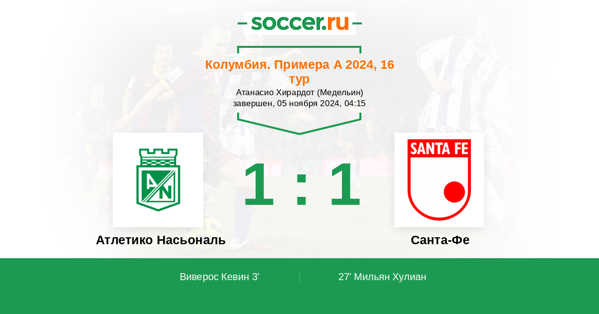 Протокол матча Атлетико Насьональ против Санта-Фе