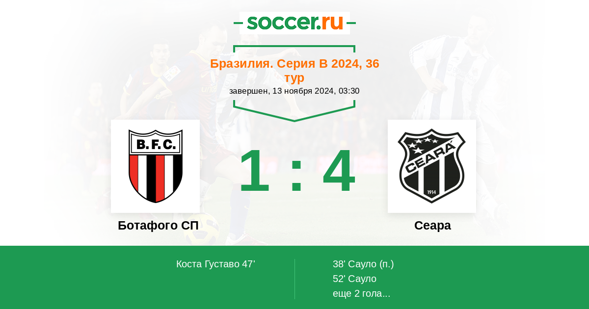 52' (1:2) Сауло (73) (Лоилоа Давид (4))