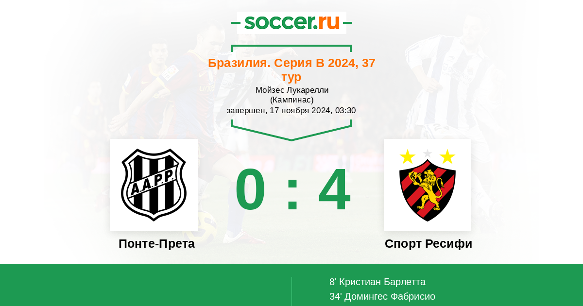 Протокол матча Понте-Прета против Спорт Ресифи