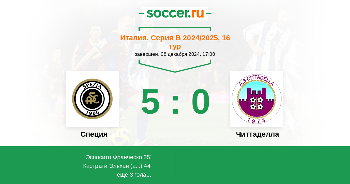 Протокол матча Специя против Читтаделла