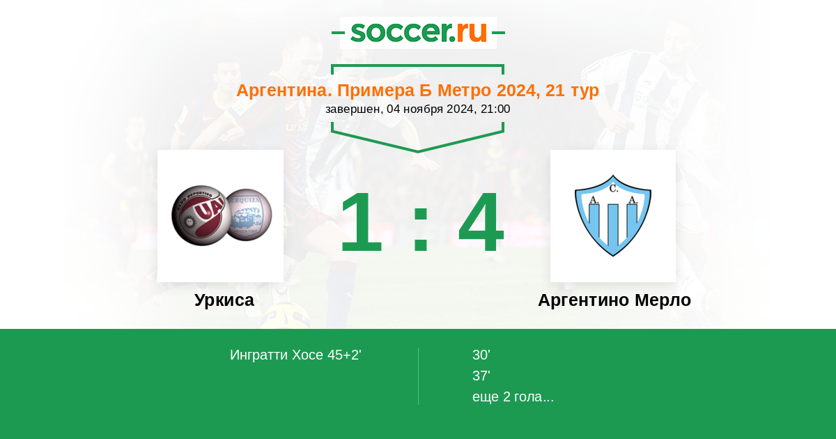Протокол матча Уркиса против Аргентино Мерло
